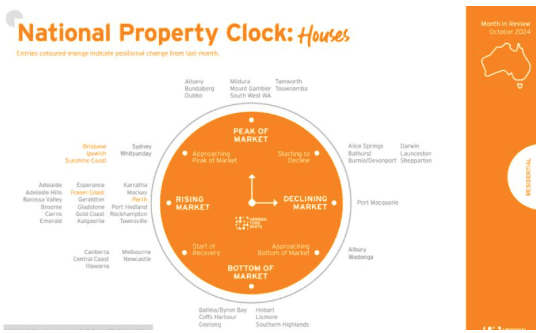 Understanding where a market sits in this cycle is crucial for buyers, as timing can impact affordability, competition, and long-term returns. One of the largest independent valuation firms, Herron Todd White, release a monthly national report which includes their property clock. This property clock provides their insight in to where they see different markets are performing.